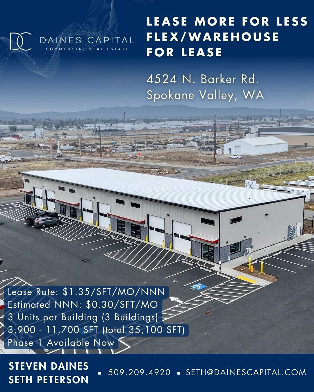 We help you successfully navigate commercial real estate transactions with integrity, dedication and exceptional service. Whether you're a seasoned investor or buying, selling, or leasing commercial property for the first time in Spokane, Coeur d'Alene, or surrounding areas, our award-winning commercial real estate brokers provide expert guidance. We specialize in industrial warehouses, office buildings, retail spaces, and investment properties across Washington, Idaho, Utah, Texas, and Montana.