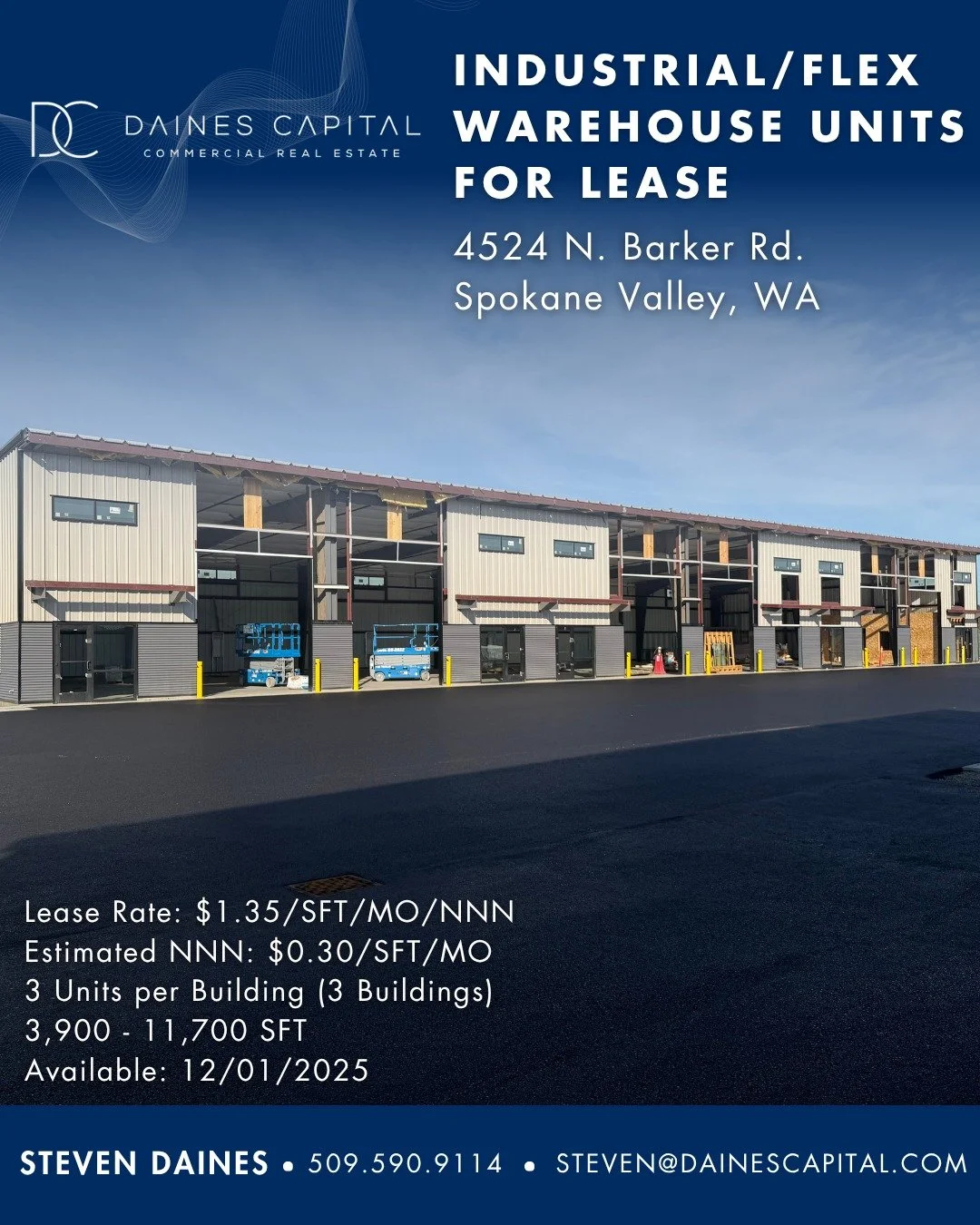 This industrial warehouse, located at 16608 E Sprague Ave in Spokane Valley, WA, is an exceptional investment opportunity priced at $2,800,000. Built in 2019, the property features a 12,595-square-foot building on 1 acre, zoned CMU, with 31 parking stalls. It is currently under a 5-year Absolute NNN Lease with 2% annual escalators and offers a 6% cap rate. Conveniently situated with easy access to Spokane Valley, Liberty Lake, and Idaho, the property sees high traffic along E. Sprague Ave. The tenant, supported by Dunes Point Capital, a $1.5 billion company, provides critical services for public safety, including fire and police vehicle operations. Within a 1-mile radius, the area boasts a population of 12,424, a median household income of $60,957, and 5,614 daytime employees, with projected growth of 8.9% from 2024 to 2029.